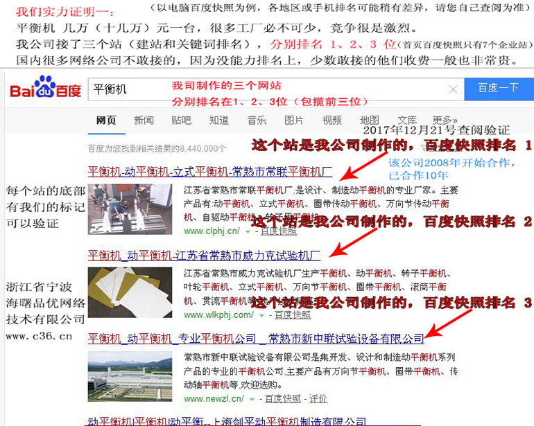 平衡機(jī) : 2018-05-23上線 2018-06-08排名第5頁 2018-07-01排名第30名 2018-08-15排名第11名 2018-08-26排名第7名 (注:平衡機(jī)一臺需要幾萬到10多萬元, 是難排名的關(guān)鍵詞,百度重點(diǎn)關(guān)照,因百度推廣的話,大概要60元一點(diǎn)擊)
